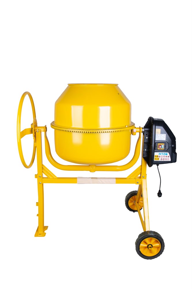 Конструкция бетоносмесителя отличается прочностью: корпус выполнен из стали с толщиной металла 1,2/1,8 мм, что придает ему устойчивость к механическим воздействиям. Общая высота устройства составляет 1315 мм, длина — 838 мм, а ширина — 1185 мм, при весе всего 58,0 кг, что облегчает его транспортировку и установку. Привод опрокидывания барабана ручной, что интуитивно понятно и удобно в использовании. Класс защиты IP44D обеспечивает безопасность работы в условиях стройплощадки, защищая от пыли и брызг воды. Произведенный в Китае, этот бетоносмеситель соответствует всем необходимым стандартам качества.