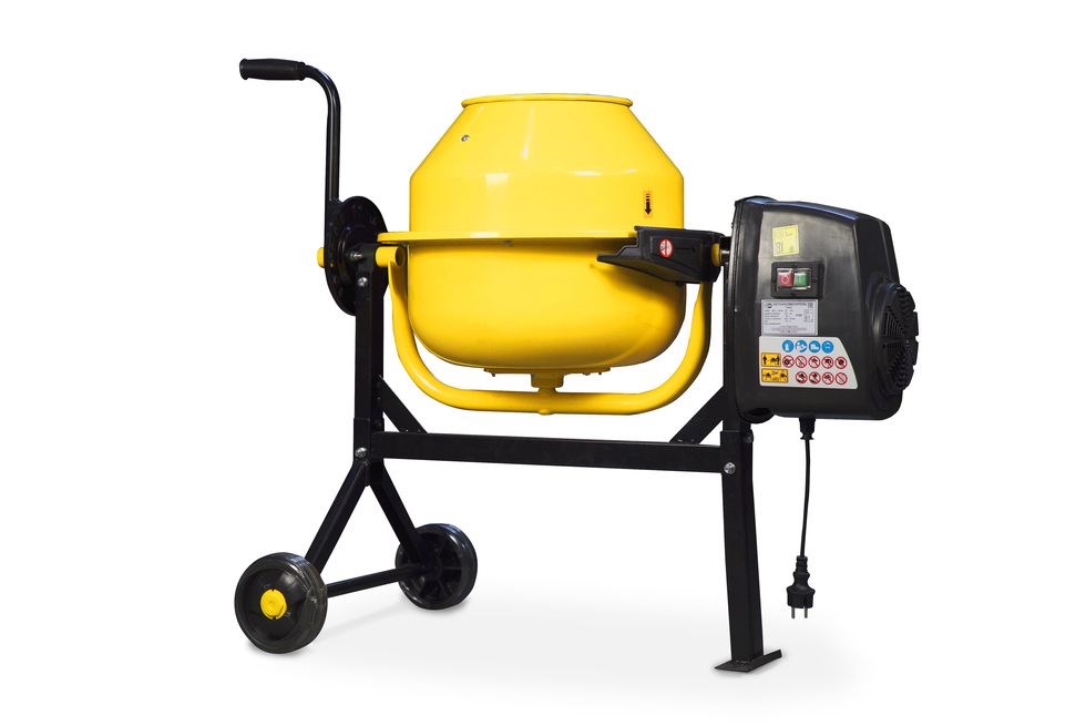 Сердцем бетоносмесителя является электродвигатель мощностью 150 Вт, который обеспечивает эффективное перемешивание смесей с частотой вращения барабана 28,9 об/мин. Зубчато-ременная передача гарантирует плавную и надежную работу привода. Опрокидывание барабана для выгрузки готовой смеси осуществляется вручную, что удобно и просто в эксплуатации. Устройство рассчитано на работу в температурном режиме от +5 до +35 градусов Цельсия и при частоте 50 Гц.