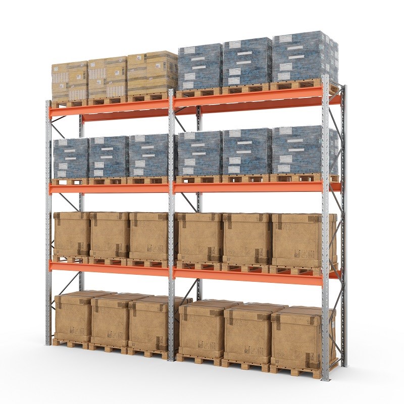 Две секции стеллажа металлического паллетного 5000х2700х1100 мм (100.1.5). Ярусы: пол+3