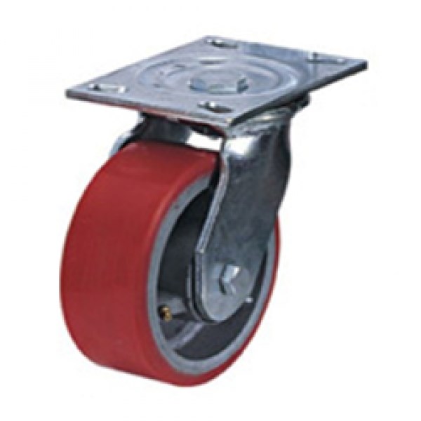 Полиуретановый слой колес имеет большую грузоподъёмность, превосходную эластичность. Вдобавок неоспоримым плюсом является невосприимчивость к влиянию кислорода, минеральных масел и слабых кислот. Эксплуатируются при температурах от -30°С до + 50°С. Сфера использования: различная пищевая и химическая промышленность, лабораторное и строительное оборудование.