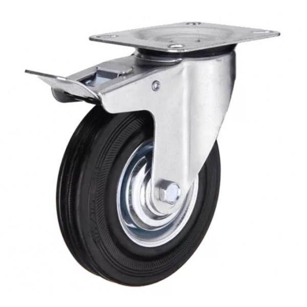 Колесная опора промышленная поворотная с тормозом SCb160 черная резина