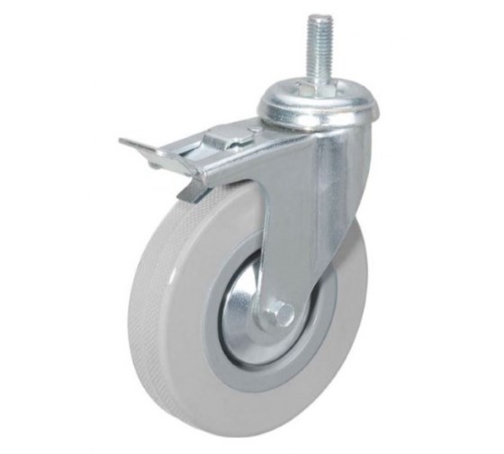 Колесо аппаратное с болтом поворотное с тормозом SCtgb 55, серая резина