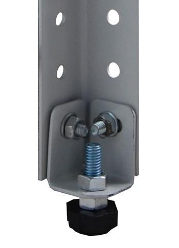 Регулируемая опора является дополнительным элементом быстро-сборного металлического стеллажа. Выполнена из пластика, комплект опор выдерживает равномерно распределенную нагрузку до 450 кг на секцию.