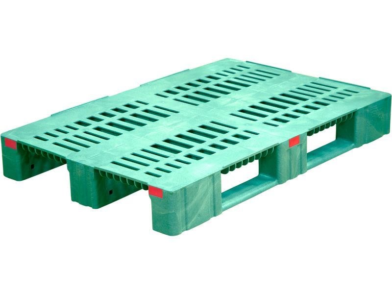 Паллет п/э 1200х800х150 перфорированный усиленный (версия 2), на 3-х полозьях цв. зеленый (TR 1208-3-2 зеленый)