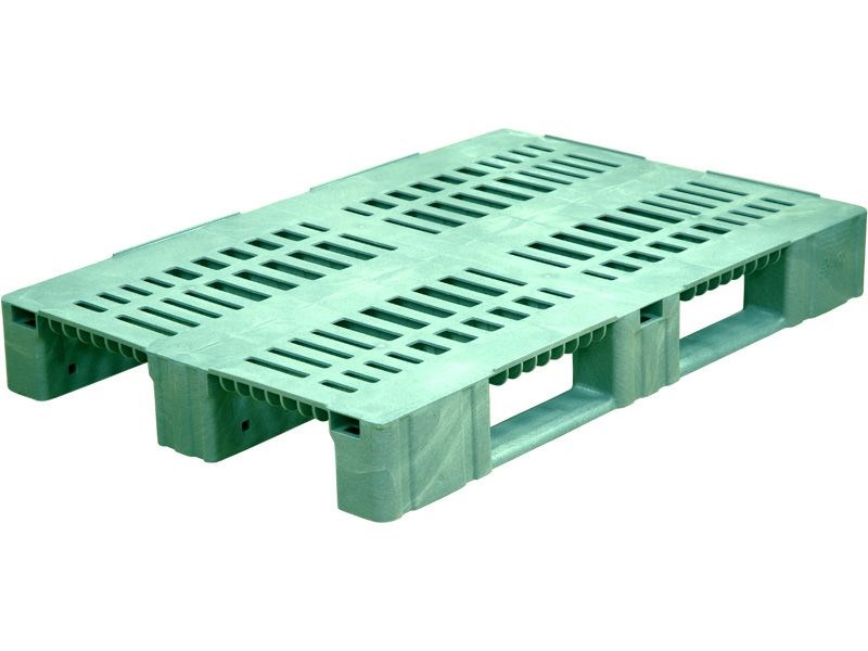 Паллет п/э 1200х800х150 перфорированный (версия 2), на 3-х полозьях цв. зеленый (TR 1208-3 зеленый)