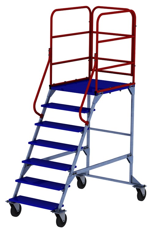 Ищете надежное и универсальное решение для работы на высоте в складских, производственных или торговых помещениях? Представляем вашему вниманию Передвижную мобильную лестницу с одним лестничным маршем ЛР 6.1 (6 ступеней 1 марш) 160-чр – незаменимого помощника для эффективного доступа к товарам и оборудованию. Эта тщательно спроектированная модель обеспечивает безопасность и комфорт при выполнении различных задач, связанных с подъемом и перемещением.