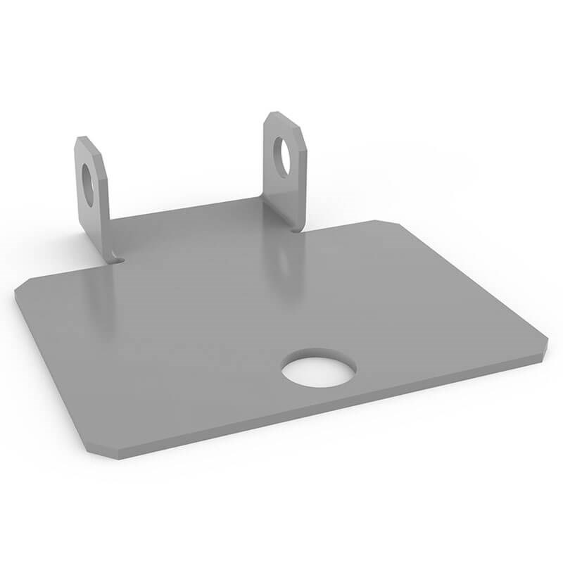 Съемный подпятник для установки на стойки стеллажа СГ Ультра. Подпятник имеет форму квадрата 75х75 мм с двумя отгибами высотой 23 мм и шириной 15 мм. Подпятник имеет два отверстия ø7 мм для крепления к стойке и одно отверстие для крепления к полу ø10,5 мм. Материал - сталь 08 пс толщиной 1,5 мм.
