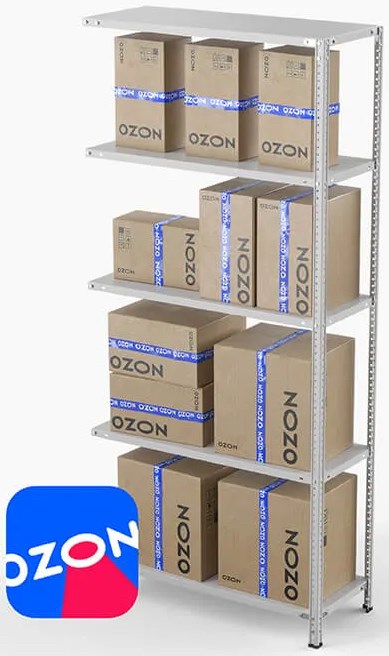 Приставная секция стеллажа для ПВЗ Озон МС, 2200х1000х400 мм, 5 полок