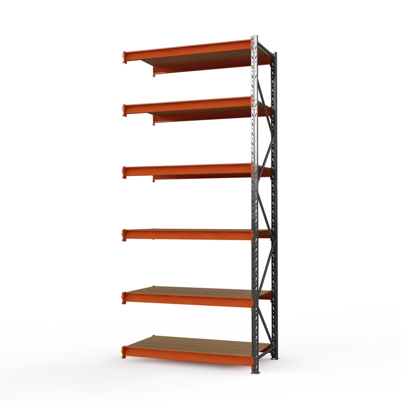 Секция приставная стеллажа металлического Оптима, 3500x1530x785 мм. Ярусы: 6 шт. фанера
