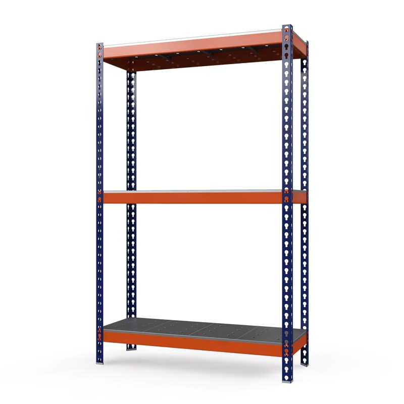 Стеллажи Профи-Т окрашиваются порошково-полимерной краской (стойки - синего цвета, стяжки - оранжевого).