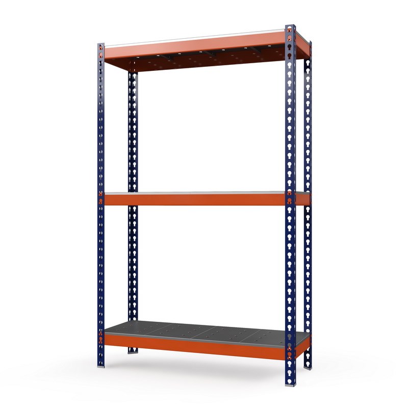 Стеллажи Профи-Т окрашиваются порошково-полимерной краской (стойки - синего цвета, стяжки - оранжевого).