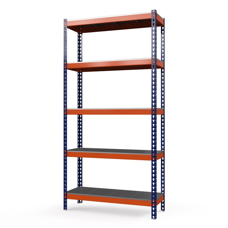 Стеллажи Профи-Т окрашиваются порошково-полимерной краской (стойки - синего цвета, стяжки - оранжевого).