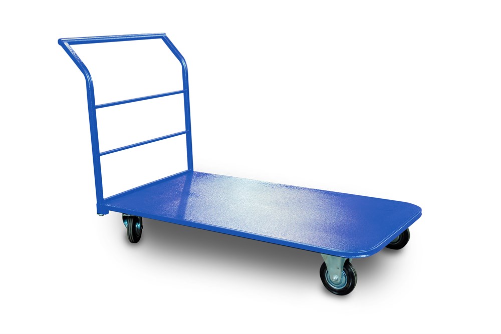 Особое внимание уделено надежности и удобству эксплуатации. Четыре колеса диаметром 200 мм, изготовленные из прочной резины, обеспечивают плавное и легкое перемещение тележки даже при полной загрузке. Удобная высота ручки в 810 мм позволяет оператору комфортно управлять тележкой, минимизируя физическую нагрузку. Прочная конструкция тележки, выполненная с использованием листа толщиной 1,2 мм и покрытая износостойкой порошковой краской синего цвета, гарантирует долгий срок службы и устойчивость к внешним воздействиям.