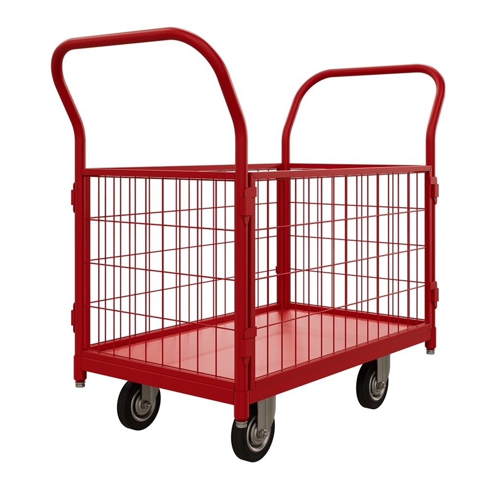 Тележка с сетчатыми бортами ТС 4 RT 6х12-27-чр-125 обладает внушительной грузоподъемностью до 270 кг, что позволяет перевозить даже объемные и тяжелые предметы. Ее конструкция включает в себя два удобных боковых сетчатых борта, которые надежно удерживают груз, предотвращая его случайное выпадение во время транспортировки. Высота ручки от основания платформы составляет 720 мм, обеспечивая комфортное управление тележкой для людей разного роста.
