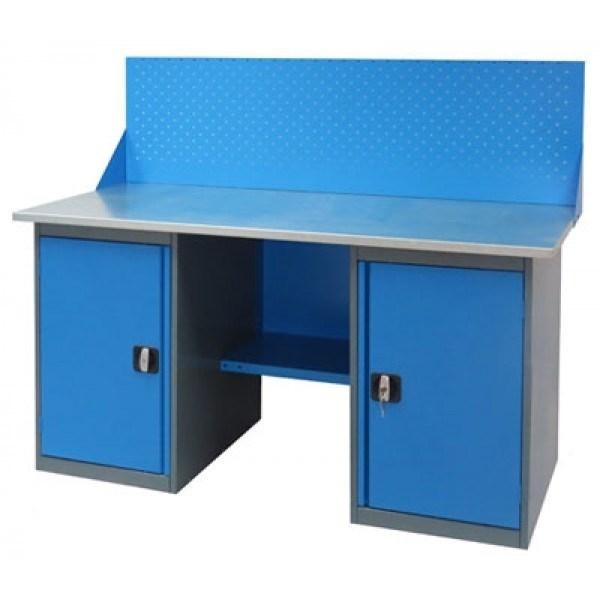 Верстак слесарный металлический с двумя тумбами ВТ2-1.6 1600х685х850 мм с панелью