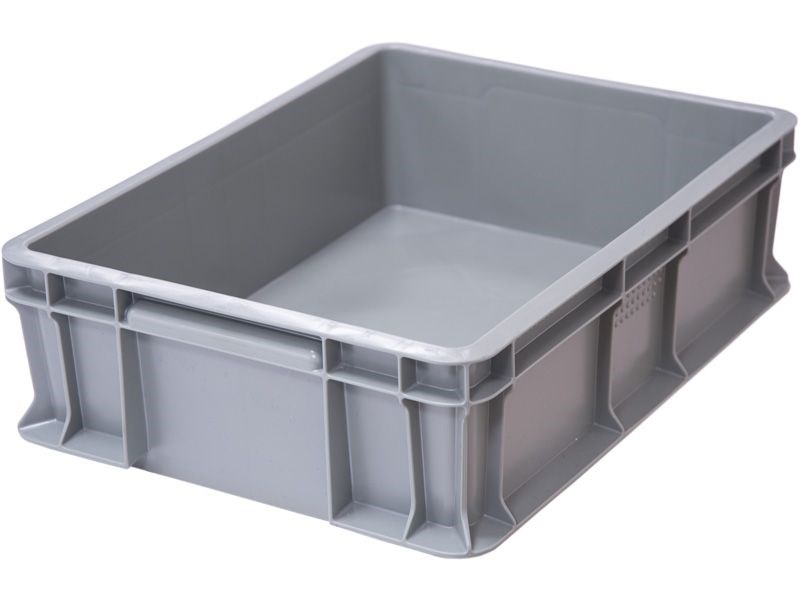 Ящик п/э 400х300х120 сплошной, с внешней ручкой цв. серый (701.03.02)