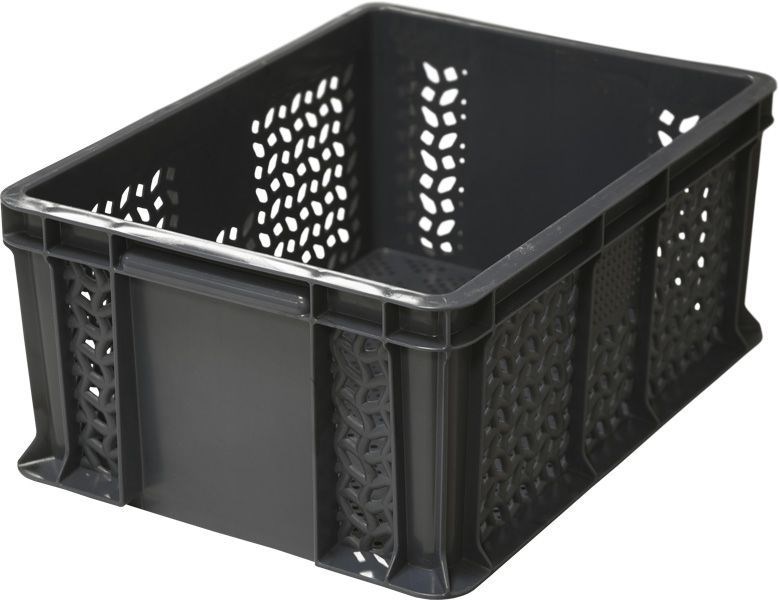 Ящик п/э 400х300х180 перфорированный, с внешней ручкой цв. чёрный (702.01.02)