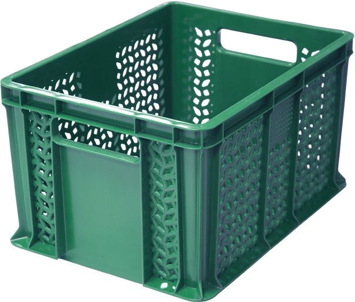 Ящик п/э 400х300х230 перфорированный, с ручками цв. зелёный (703.01.01)