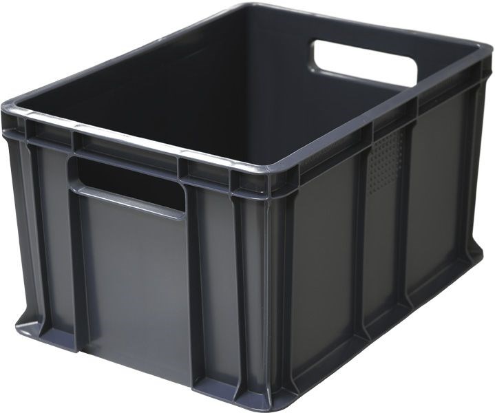 Ящик п/э 400х300х230 сплошной, с ручками цв. чёрный (703.03.01)