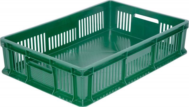 Ящик п/э 600*400*140 мм дно сплош.стенки перф. с полузакрытой ручкой зеленый (705.02.03)
