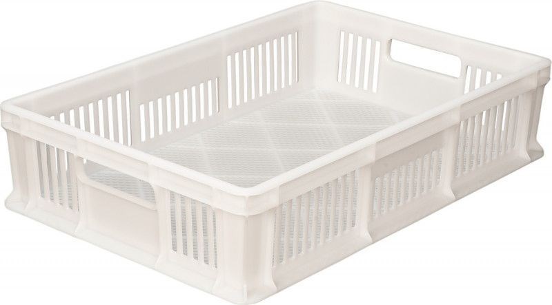 Пластиковые ящики арт.705.01.01, размерами 600х400х140 мм, универсальные штабелируемые с перфорированными стенками и дном. Ящики используются на пищевом производстве, в складском хранении, логистике. Самое широкое распространение ящик получил в хлебной отрасли.