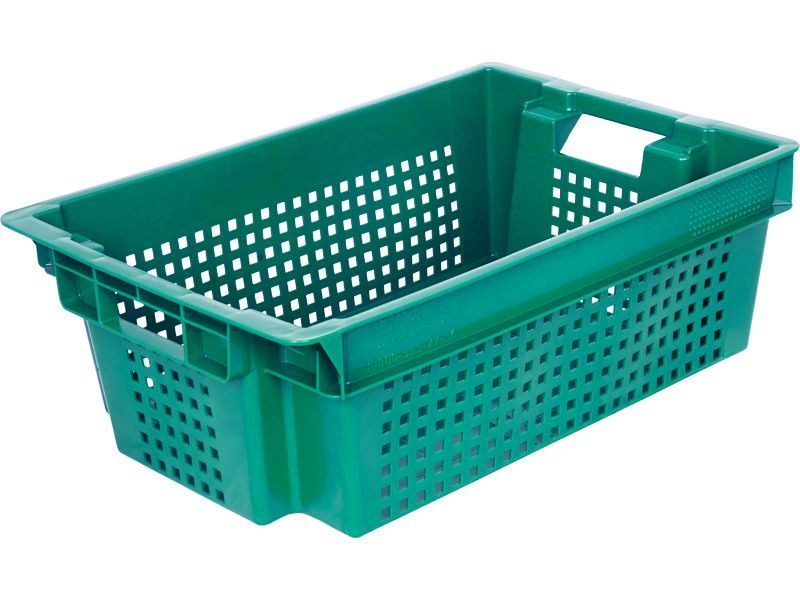 Ящик п/э 600х400х200 1,5кг. дно сплошное, стенки перфорированные цв. зелёный (102-1)