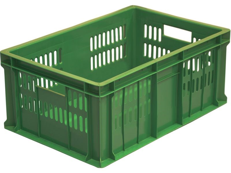 Ящик п/э 600х400х250 дно сплошное, перфорированный цв. зелёный (201-1)