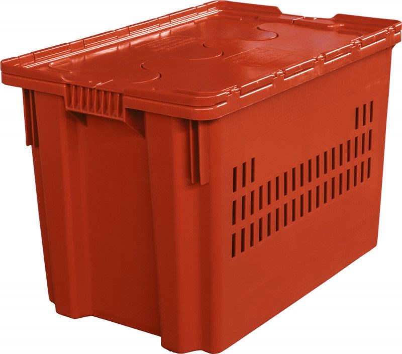 Ящик п/э 600х400х400 мороз. дно сплошное, стенки перфорированные, с крышкой цв. оранжевый (606-1 м)