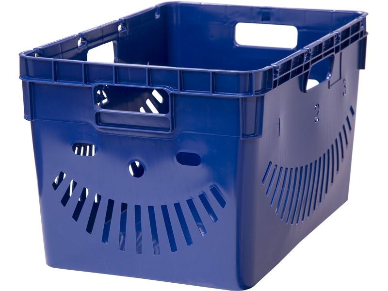 Ящик п/э 600x400x340 перфорированный, стенки с отверстиями для пакетов цв. синий (4-6434)