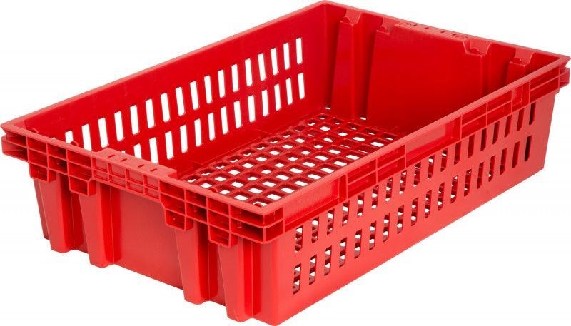 Пластиковые ящики арт.403, размерами 600х400х150, универсальные вкладываемые и штабелируемые ящики с перфорированными стенками и дном. Используются во всех отраслях: полуфабрикаты, кондитерские изделия, овощи, фрукты, мясо, рыба. Самое широкое распространение ящик получил в хлебной отрасли.