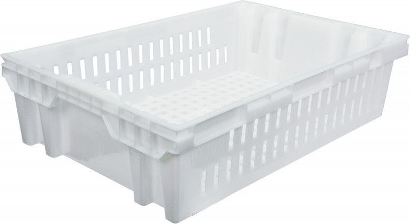 Пластиковые ящики арт. 403-1, размерами 600х400х150 мм, универсальные вкладываемые и штабелируемые ящики с перфорированными стенками и дном. Используются во всех отраслях: полуфабрикаты, кондитерские изделия, овощи, фрукты, мясо, рыба. Самое широкое распространение ящик получил в хлебной отрасли.