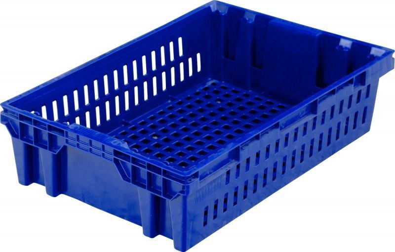 Пластиковые ящики арт. 403-1, размерами 600х400х150 мм, универсальные вкладываемые и штабелируемые ящики с перфорированными стенками и дном. Используются во всех отраслях: полуфабрикаты, кондитерские изделия, овощи, фрукты, мясо, рыба. Самое широкое распространение ящик получил в хлебной отрасли.