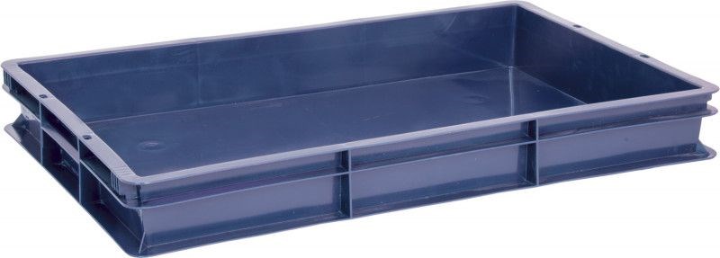 Пластиковые ящики арт. 424, размерами 600х400х75мм, универсальные штабелируемые со сплошными стенками и дном. Используются чаще всего под пирожные, а также под заморозку полуфабрикатов, но также и во всех отраслях: овощи, фрукты, мясо и рыба. За счет своей высоты удобен для хранения мелких предметов. Часто используется как поддон под другую тару.